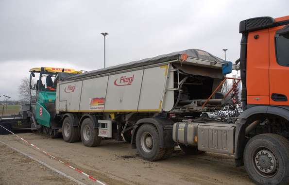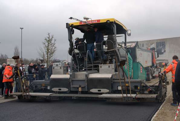 Der zweite Tag bot für die Teilnehmer einen echten Mehrwert: Auf dem Freigelände zeigten wir in Live-Demonstrationen, wie temperaturreduzierter Asphalt, Dekarbonisierung und digitale Systemlösungen realitätsnah umgesetzt werden. Dabei standen komplexe Anwendungen wie der Einbau auf geneigten Flächen, Start- und Landebahnen oder Hochleistungs-Teststrecken im Vordergrund. Besonders anschaulich: der Einsatz unseres Falteinbaus mit Abschieber, das vielseitige Anbaugerät Wiesel, der Bankettfertiger sowie der Duplexmischer.